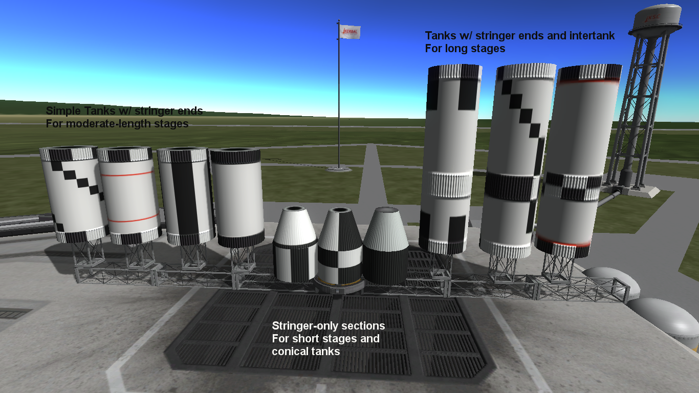 - Tanks Different parts supplied for different 'groups' of fuels (Liquid fuels, SRBs, Monoprop, Xenon). The multiple part approach is to allow for tech limiting of sizes and volumes.