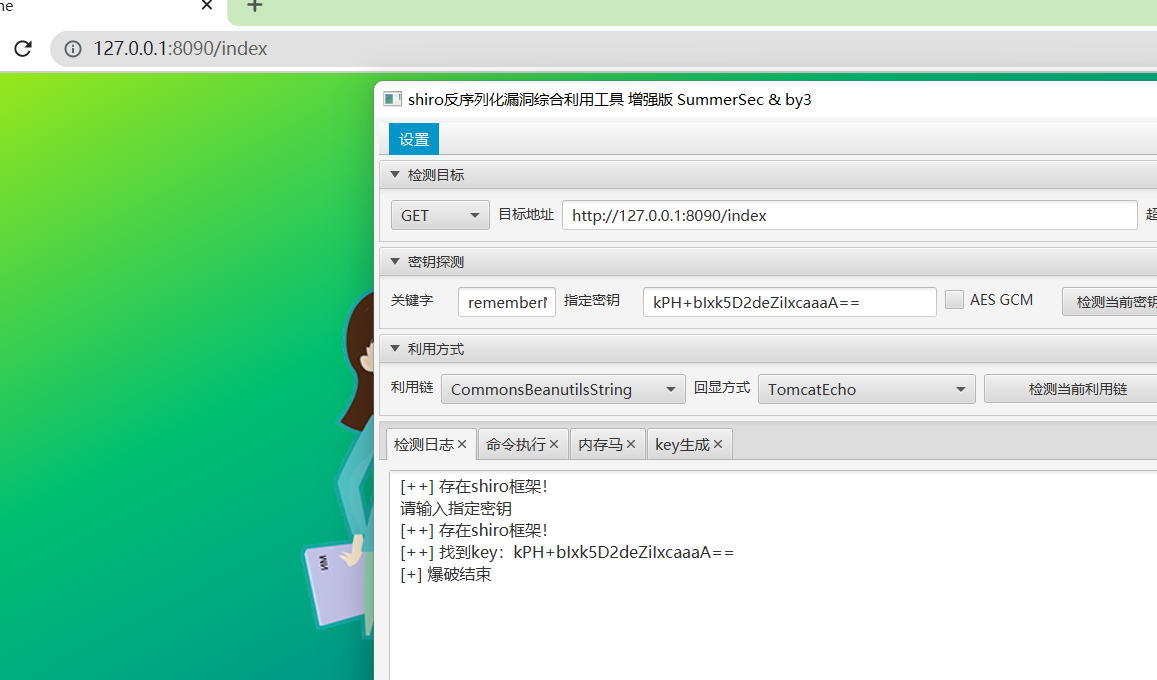 触发获取key操作,需要我们手动发送请求登录请求,无论正确与否均可。比例说使用工具的检测当前密钥功能
