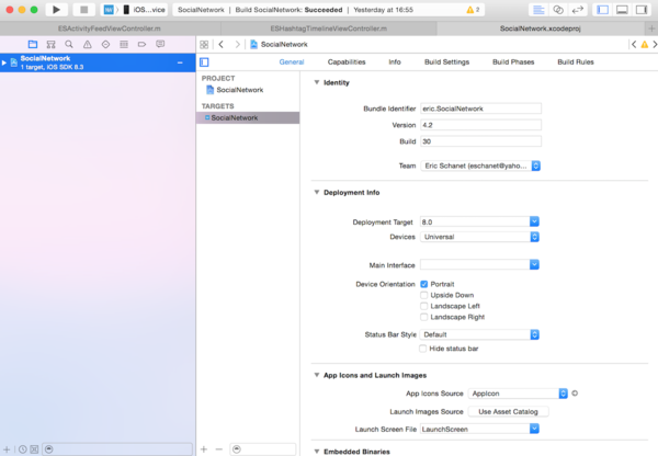 As the push notifications are sent with our custom version of the open sourced Parse API, head over to Parse's Quick Guide for iOS Push Notifications, which guides you through the (a bit complicated) setup. Basically, you have to generate some signing certificates and enable Push Services in your iOS Dev Center from Apple. This is the moment to choose your app's Bundle ID and replace the old 'eric.SocialNetwork' Bundle ID in the Info.plist file with your new one, if you haven't done it already (you should, because changing it now will affect your Facebook login, and you'll have to update the Bundle ID also on Facebook's developer page). You can now also change the 'Bundle Display Name' in the Info.plist to match your own cool app name. At the end of Parse's push tutorial, you should have a .p12 file, which you can upload to back4app.com