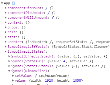 Symbol(WindowSize) is more clear than Symbol(States-0) and if you have more custom hooks used in a component, you have to check the order in the source ...If you need an ordered list of Named Hooks you could find useful the last advanced api concept.